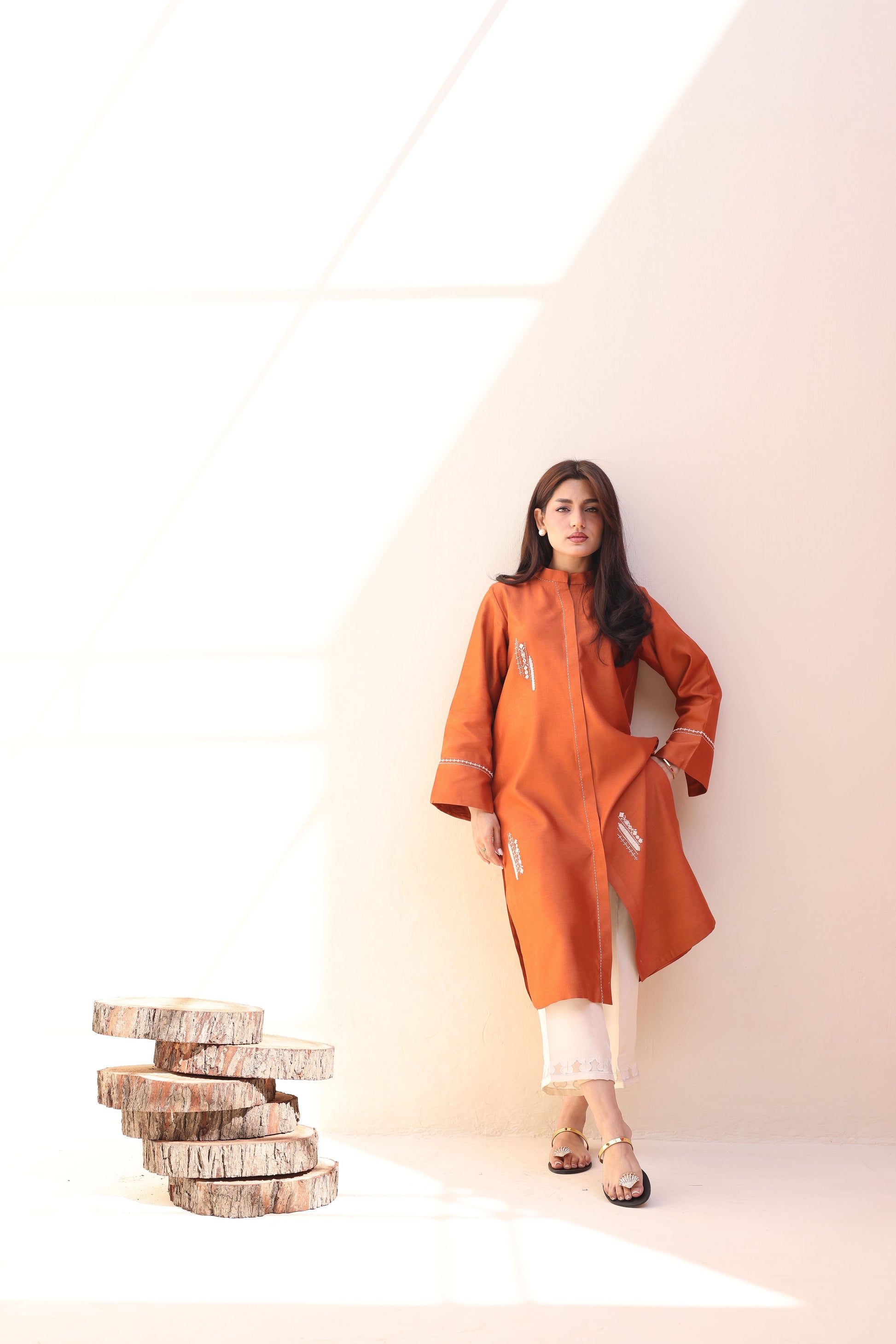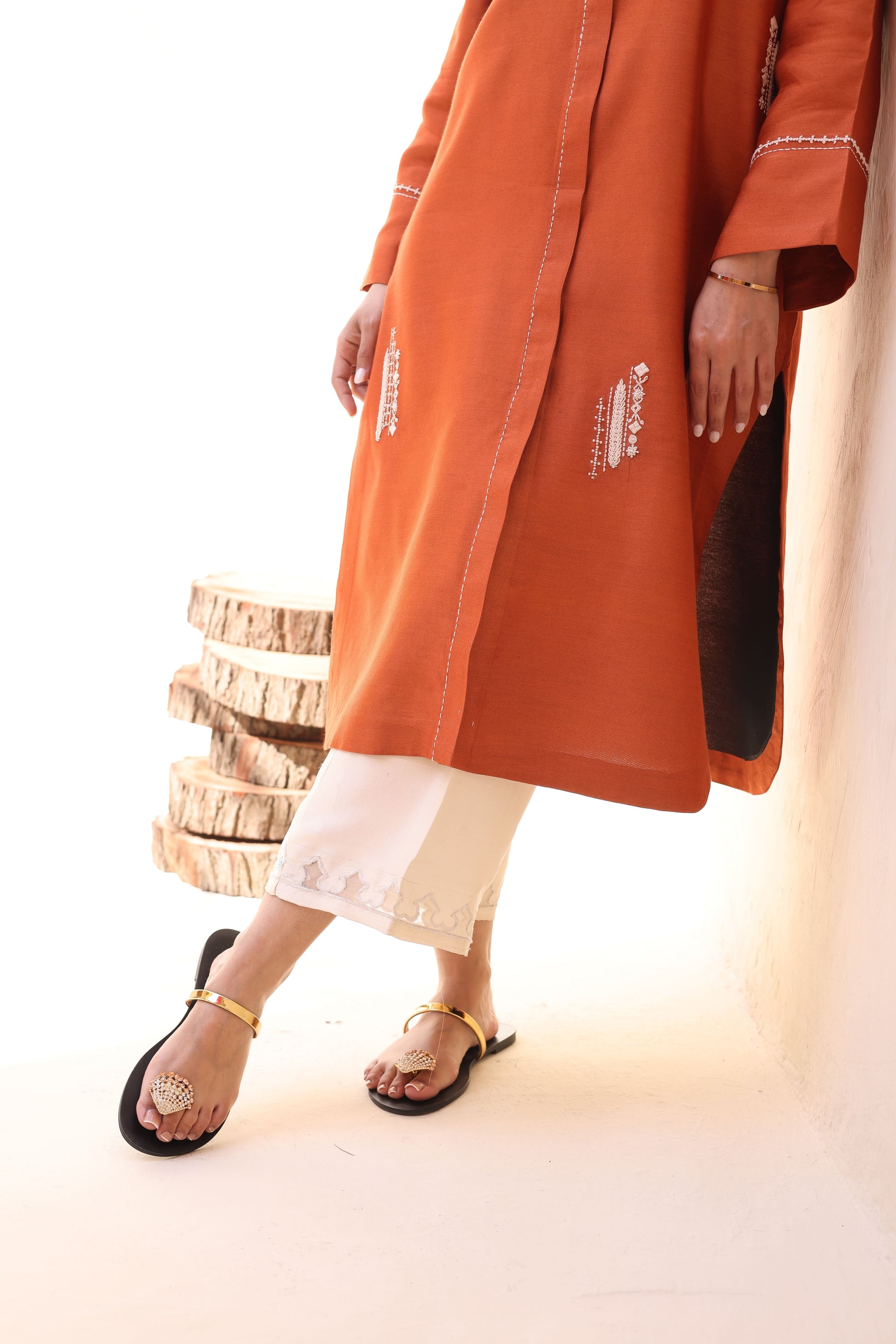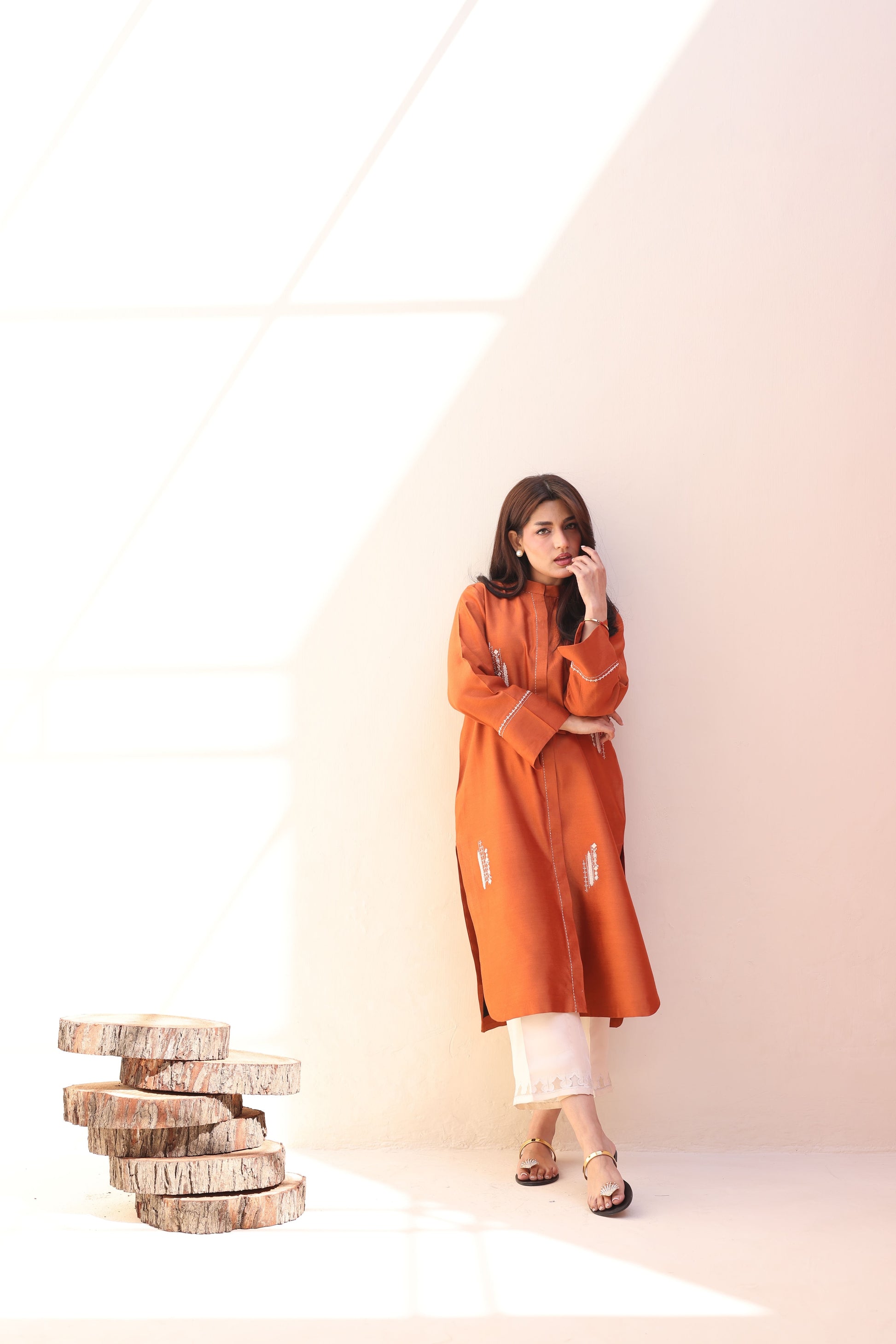 With its bright colour and subtle details Sera is as versatile as it is elegant. Pair Sera with our applique embroidered pure silk pants in pearl.